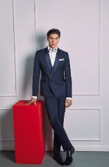 ● La Giacca da Sera: Blu notte o nero classico in lana italiana, con revers a lancia o a scialle.