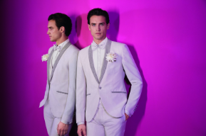 Fresco, contemporaneo e delicatamente deciso, il blu fiordaliso offre un’alternativa raffinata al tradizionale blu navy. È più chiaro, sia nella tonalità che nella presenza, e risalta meravigliosamente alla luce naturale. Abbinalo a una camicia bianca, un gilet in tonalità tenui e una cravatta, ascot o papillon in seta. È il look ideale per lo sposo che cerca eleganza con un tocco di modernità italiana.